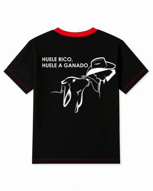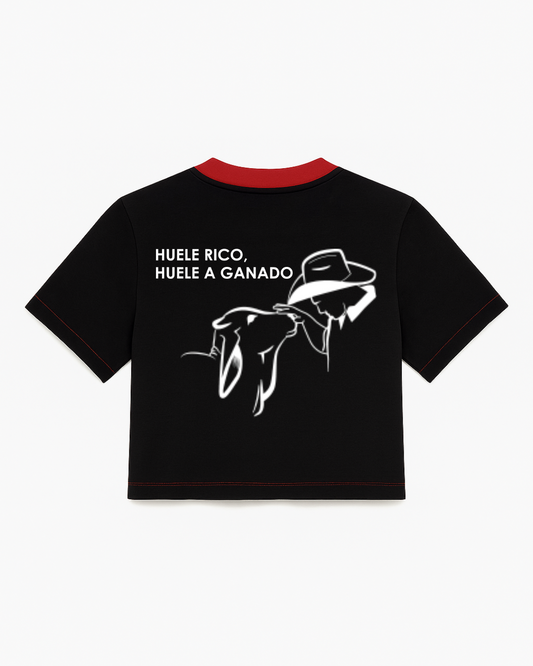 Camiseta manga corta color negro, con detalles en rojo (Mujer)
