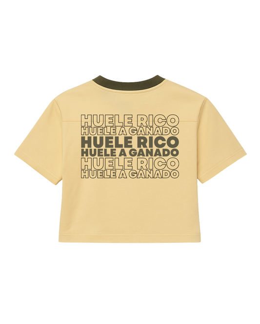 Camiseta manga corta color Beige, con detalles en Verde (Mujer)