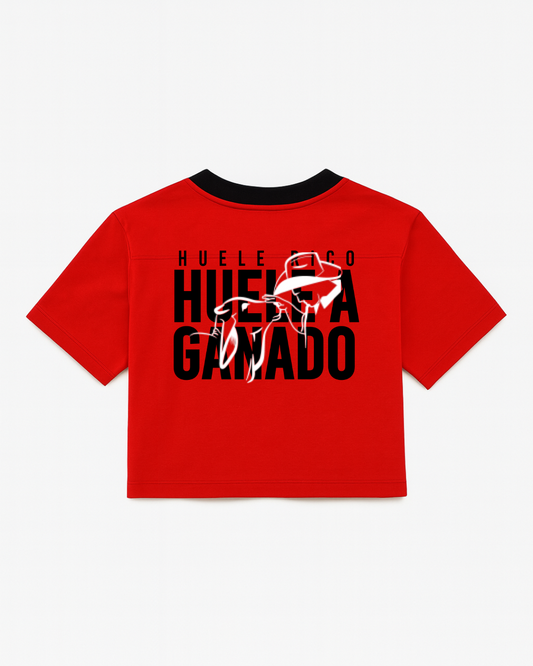 Camiseta manga corta color Rojo, con detalles en Negro (Mujer)
