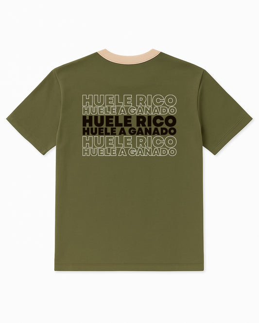 Camiseta manga corta color verde, con detalles crema (Hombre)