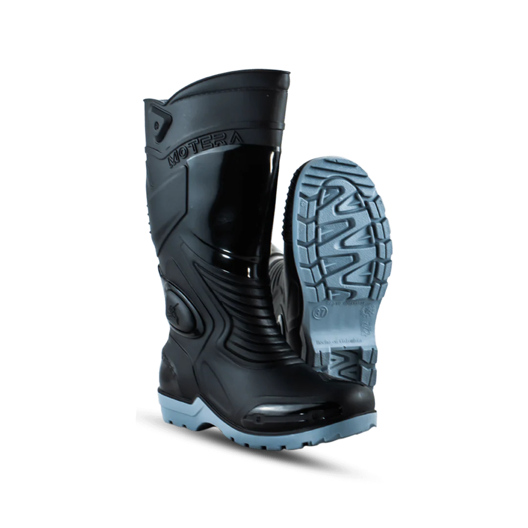 Bota motera en PVC diseñada para brindar protección, comodidad y estilo en cada recorrido. Su material resistente e impermeable la hace ideal para conducir en lluvia o en condiciones exigentes, mientras su diseño unisex y moderno se adapta tanto a damas como a caballeros. Una bota práctica, duradera y disponible en varios colores para elegir según tu estilo.